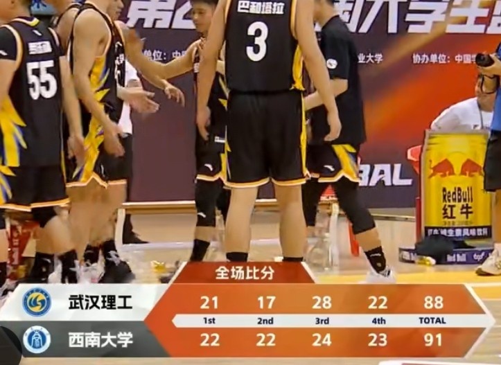 末节决战,黄鑫先中三分,赵科然迅速回应,随后武汉理工又断电,西南大学8-0再次拉开比分。但随后西南大学也进攻端受阻,王鹏翼抢断反击打成2+1后又二次进攻打成,武汉理工9-2再次咬住比分,王舒畅绝平两分未打中,秦昊墉两罚一中可惜没有时间,最终西南大学91-88险胜武汉理工。