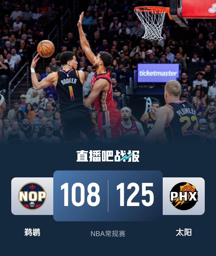 布克KD均17分 波尔25分 理查兹17+12 太阳复仇鹈鹕结束3连败