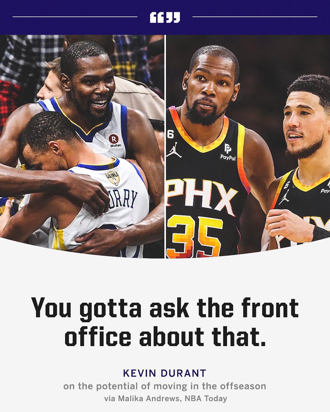 杜库还有重组可能?杜兰特谈夏天未来:这你得问管理层去