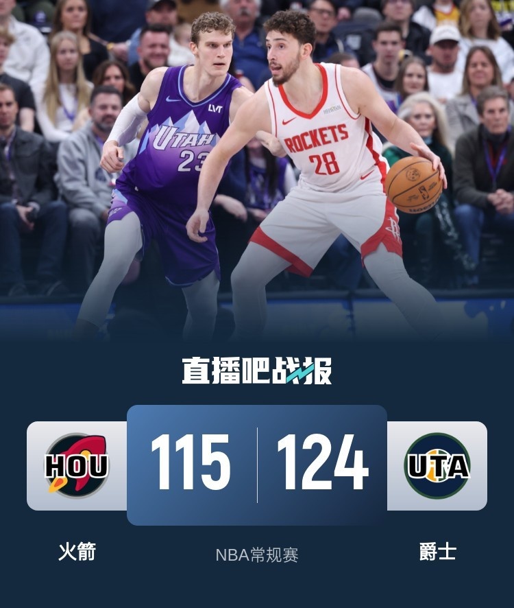2月23日讯 NBA常规赛,火箭对阵爵士,火箭上场比赛力克森林狼,爵士近来遭遇2连败。